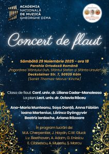 ❗️Sâmbătă, 29 noiembrie, ora 17:30 vom avea rugăciunea de seară, iar de la ora 18:00 vom avea un concert clasic de colinde a clasei de flaut a Doamnei Conferențiar univ. dr. Liliana Cadar-Manoleasa, iar la pian pe Doamna lector univ. dr. Octavia Răceu.